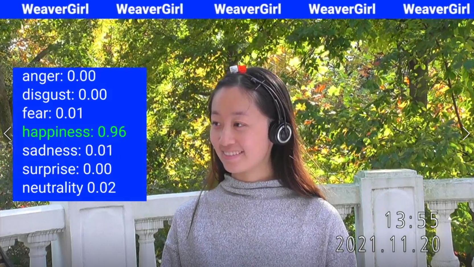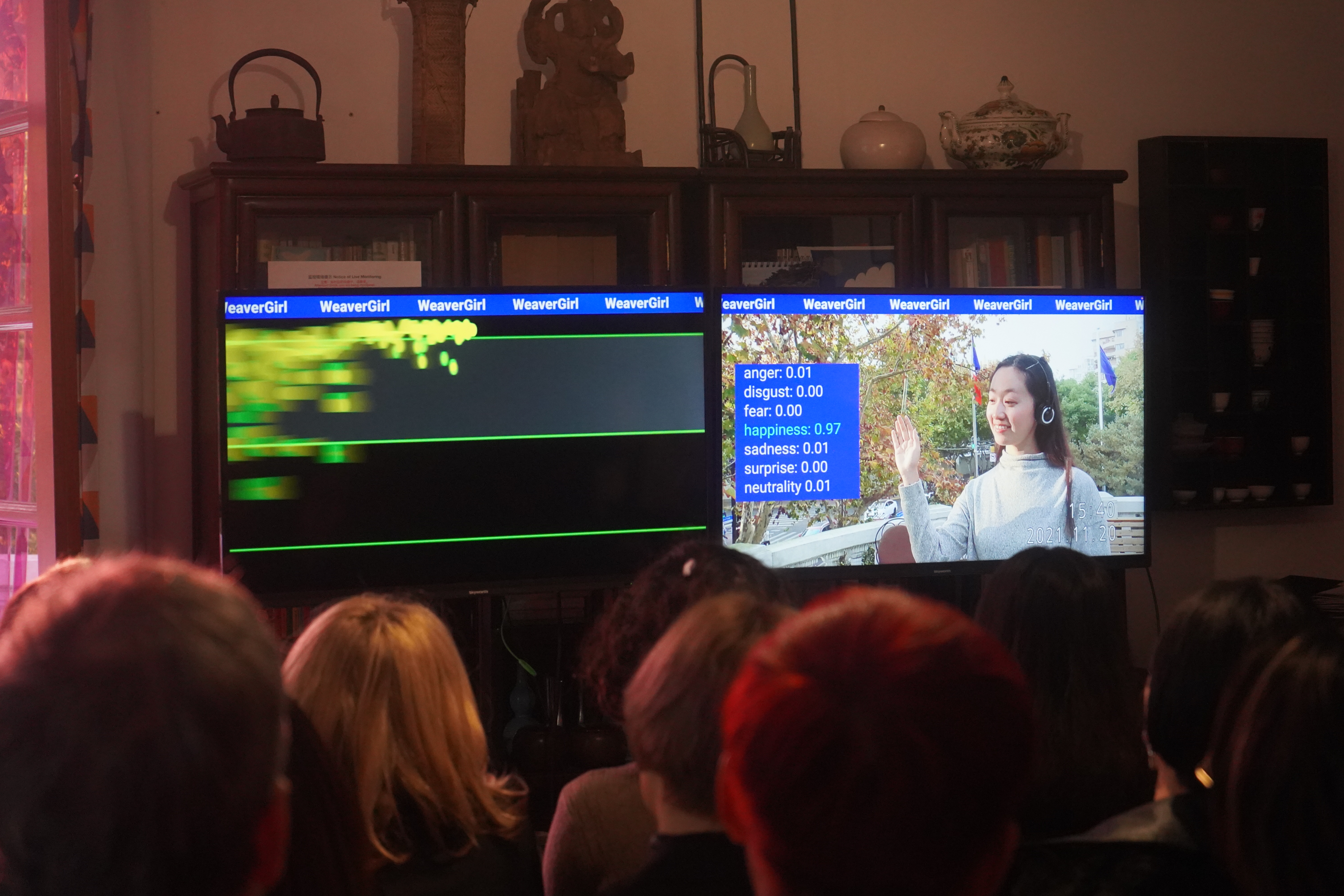 As judges, the audience assessed the emotional performance of an anonymous girl after wearing the test product. She wore the test headset and began to received training from the product, while outputing emotional data through a real-time emotion recognition AI system.